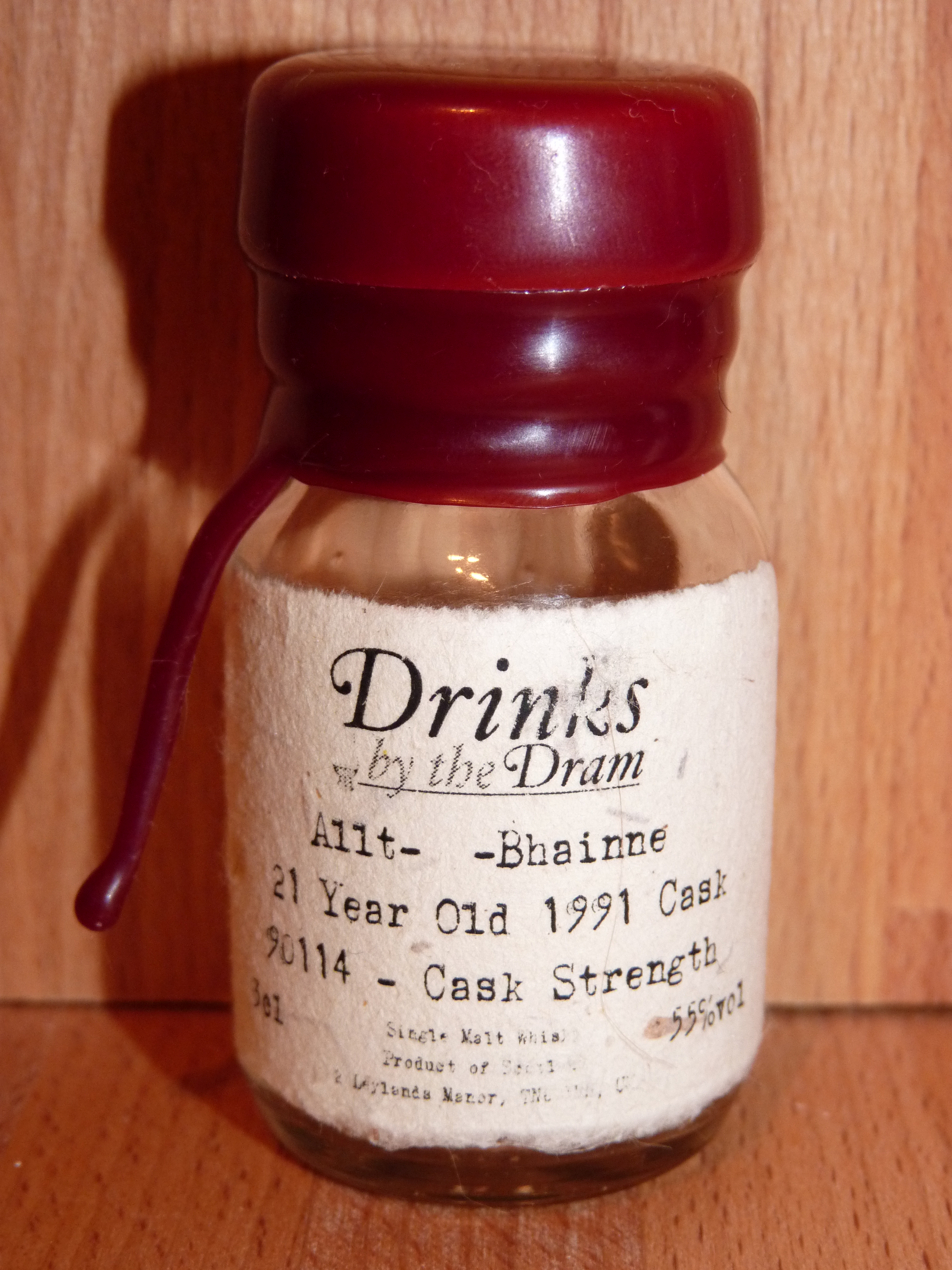Purchased via Master of Malt, this 3cl Drinks by the Dram sample cost £5.51, not bad for a 21 year old cask strength whisky from a reasonably hard to find distillery. Allt-á-Bhainne was built in 1975 by Chivas Brothers to produce malt whisky for blending, it was taken over by Pernod Ricard in 2001 and production ceased between 2002 and 2005. There have been no official bottlings from the Allt-á-Bhainne distillery as yet, but a reasonable number have appeared from independent bottlers, such as this Signatory example.