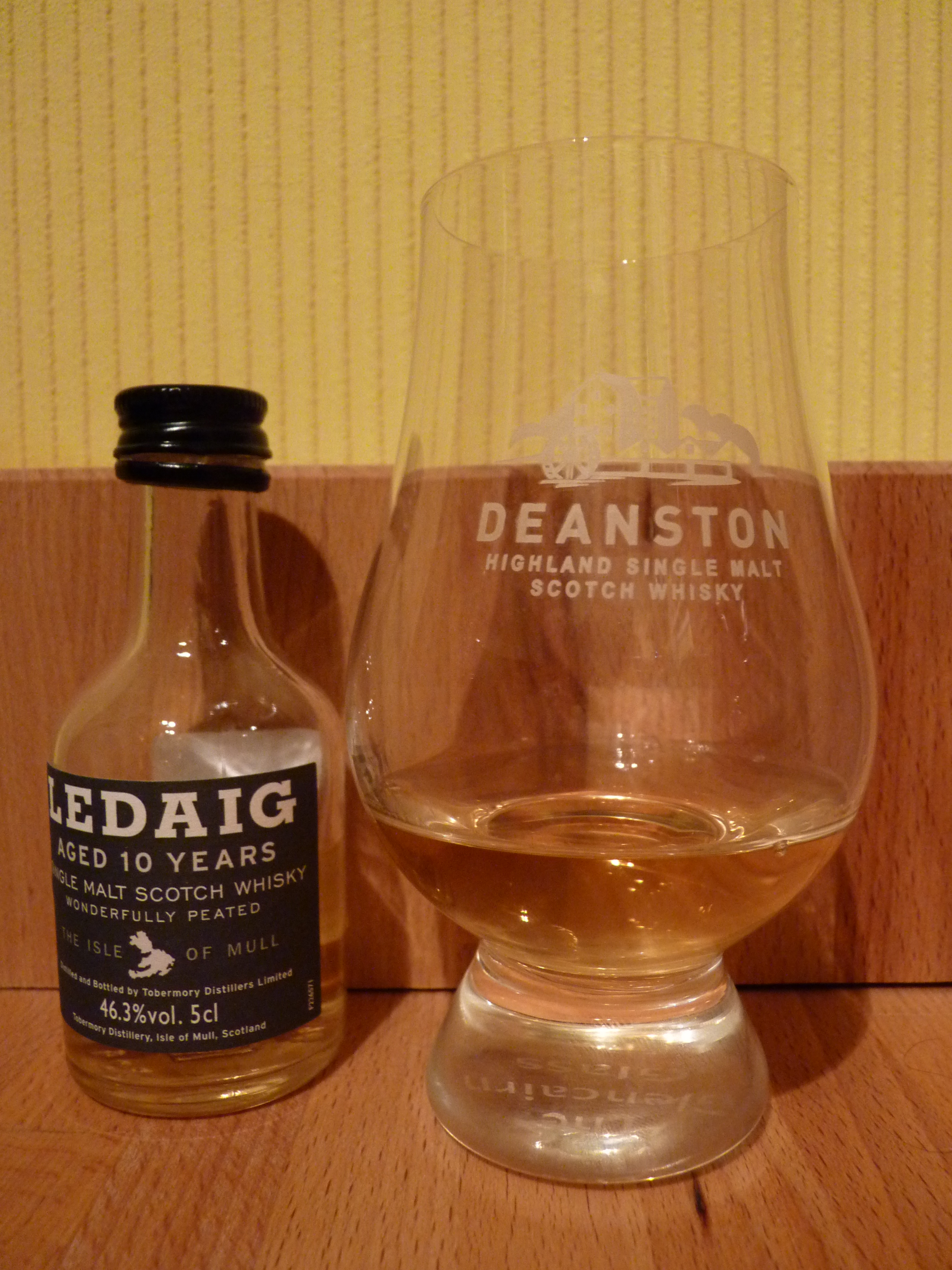 The last of my mini Deanston/Tobermory vertical tasting was completed by the Ledaig 10 Years Old, specifically tasted immediately after the Tobermory 10 Years Old in order to determine the contribution of the peated barley. Another £5 for 50ml miniature purchased from the Deanston distillery shop.