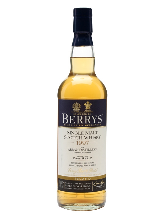 A 1997 vintage whisky from Arran, bottled by veteran spirits experts Berry Brothers and Rudd. This was bottled in 2013 at 16 years of age, having spent an unspecified period being finished in a cask which used to hold Marsala.