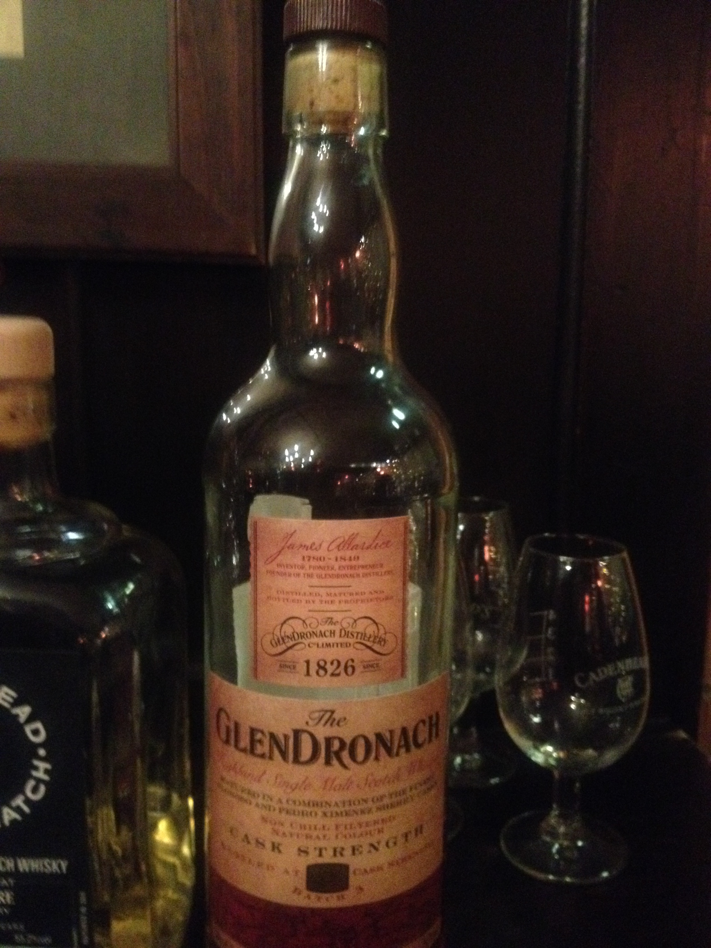 A strong sherry monster, matured in Oloroso casks, with no age statement (NAS). It could only be Glendronach! This is their 3rd incarnation of the Cask Strength release. Went down well but are they guilty of over-egging the pudding (or over-sherry maturing the whisky)?