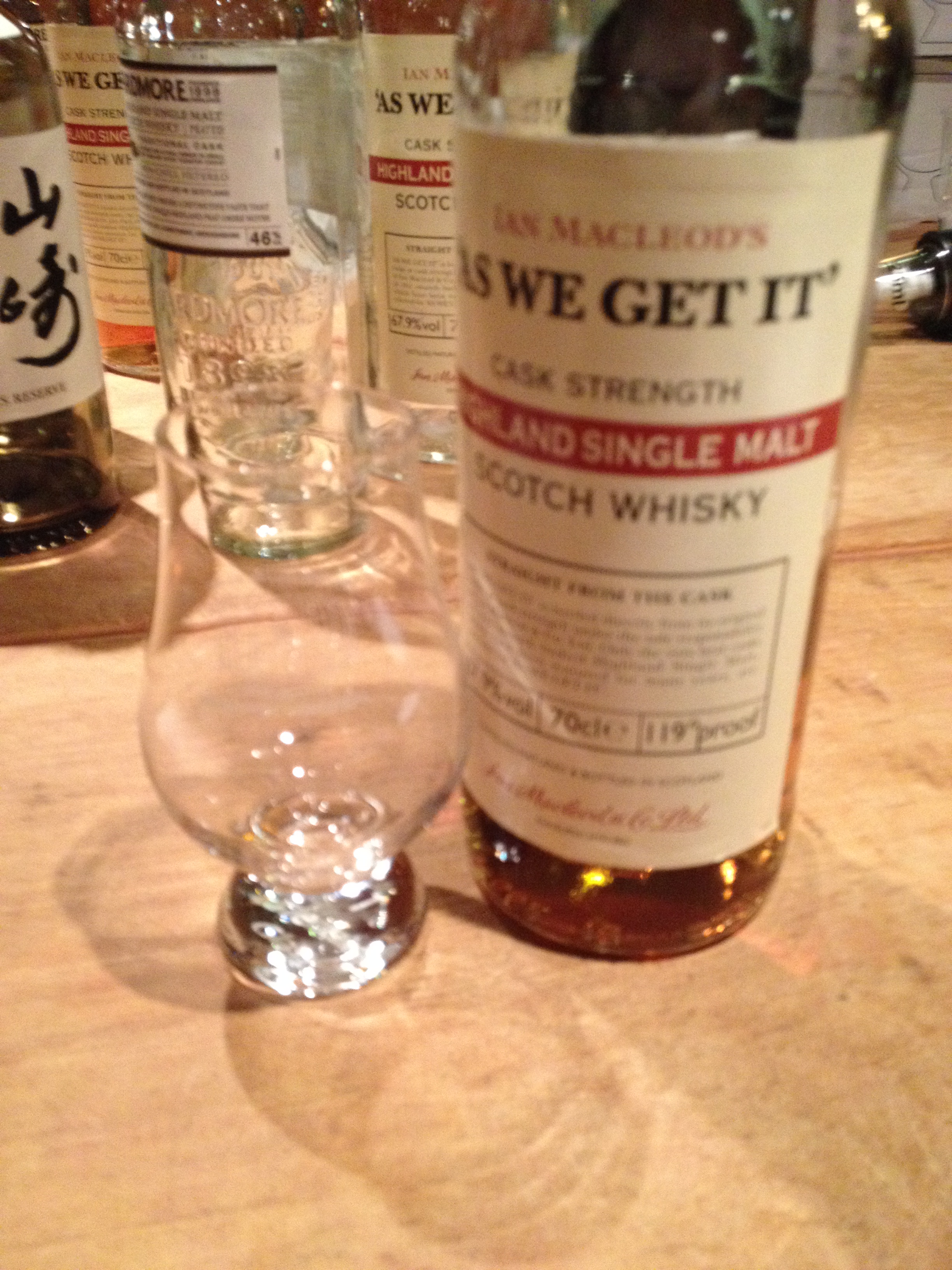 Intentionally blurry shot of the undisclosed Highland ‘As We Get It’, I hope people took our advice to add water to this one. Lots and lots of water. At 67.9% this is one of the strongest whiskies I have come across. Watered down it does reveal some of its very enjoyable heavily-sherried nature.