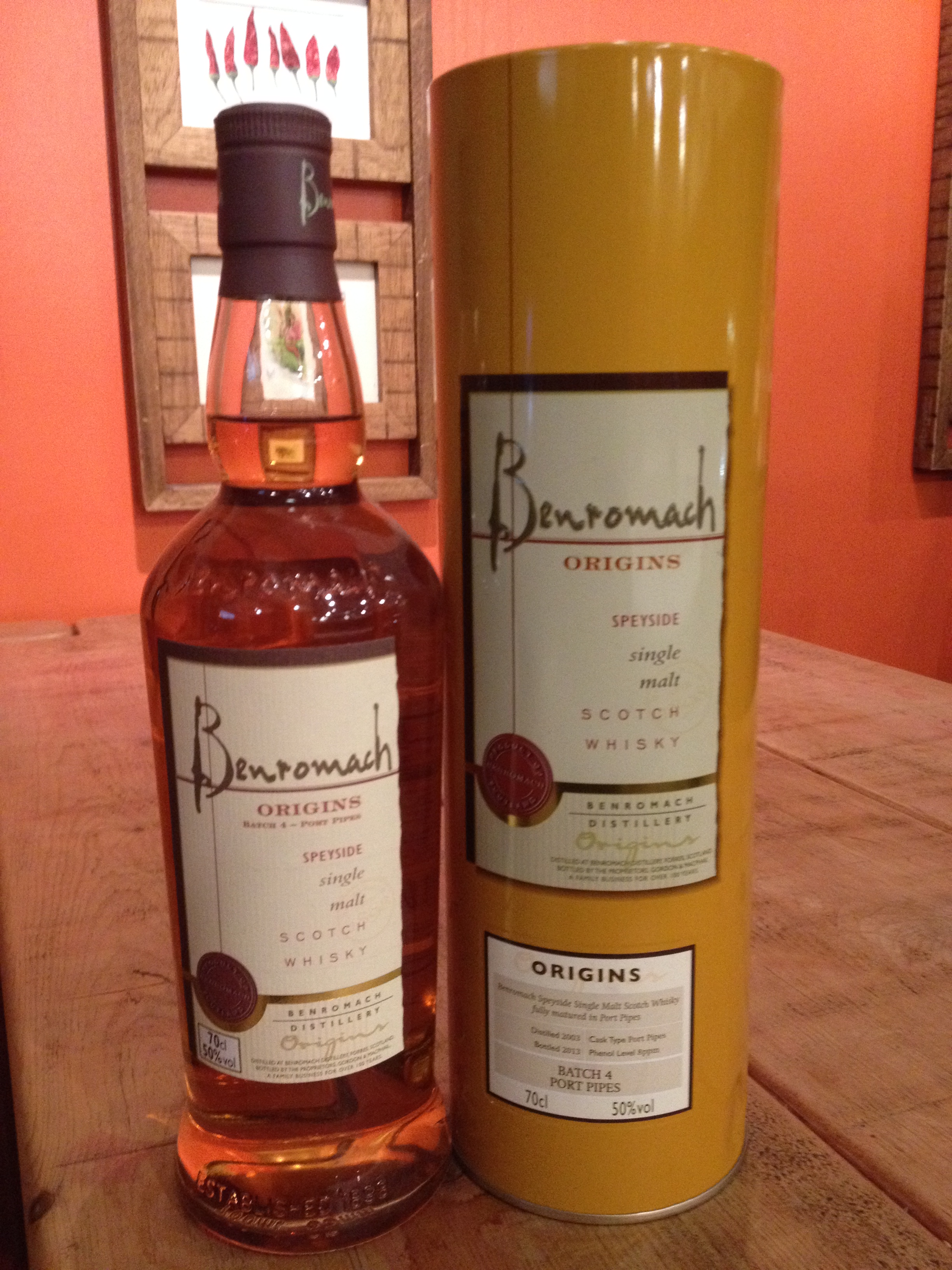 Dram #4 at the WOLS Benromach Wood Finishes tasting hosted by Thomas McEntee was this Origins Batch 4 Port Pipes expression. Not a wood finish per se but an interesting contrast to the Port Wood finish sample earlier.
