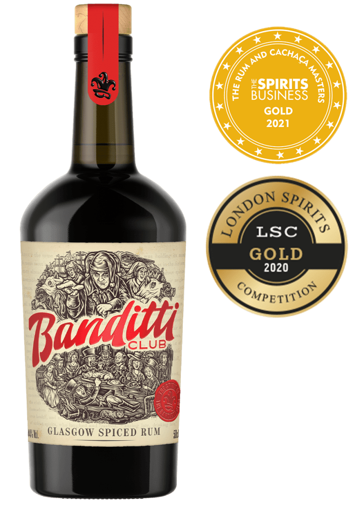 Banditti Club Glasgow Spiced Rum is named after a band of ardent spirits who would meet in Glasgow’s local public houses in the late 18th and early 19th century; singing, eating and playing music late into the night.